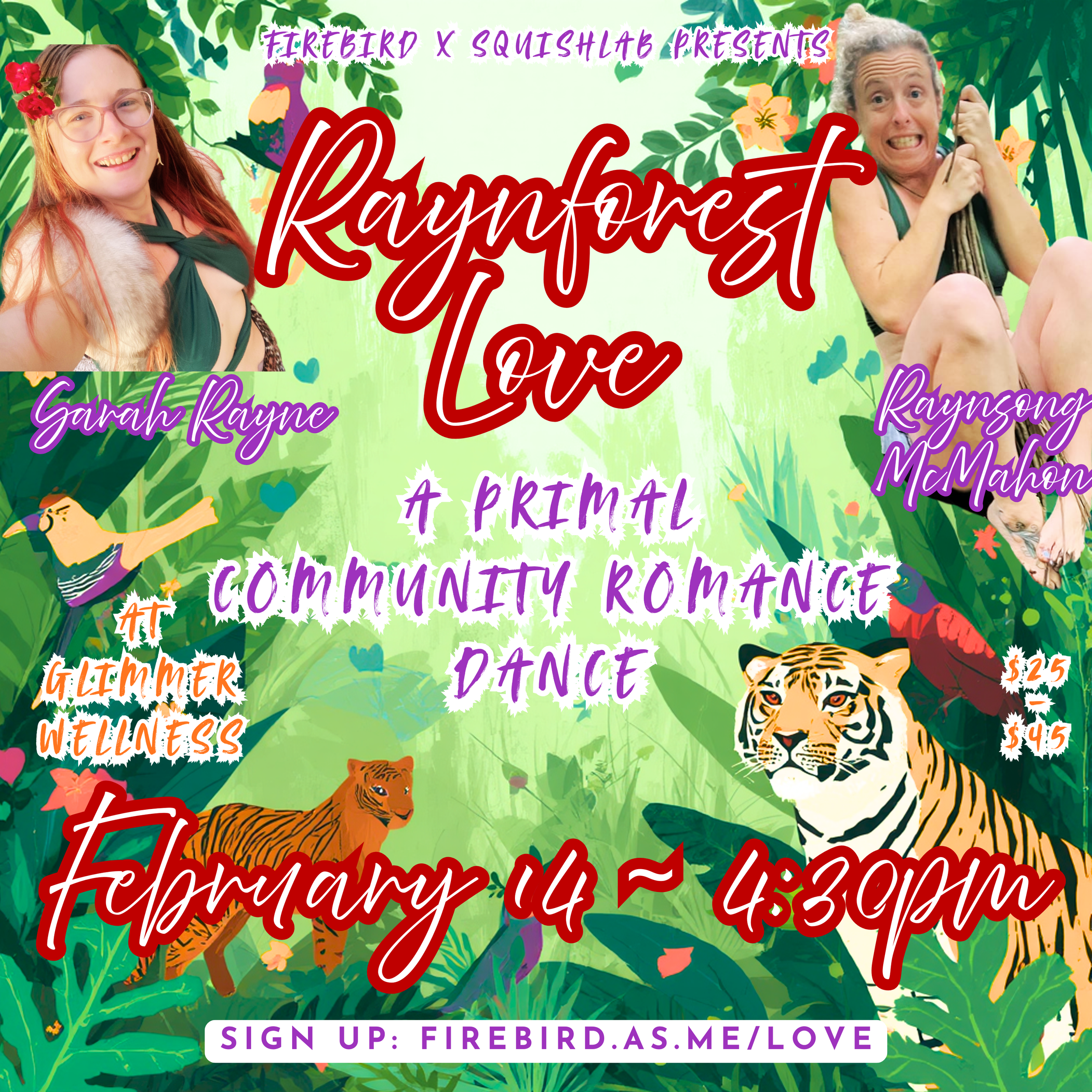 Join us in the Raynforest for a primal play community romance dance & cuddle experience this Valentines Day -